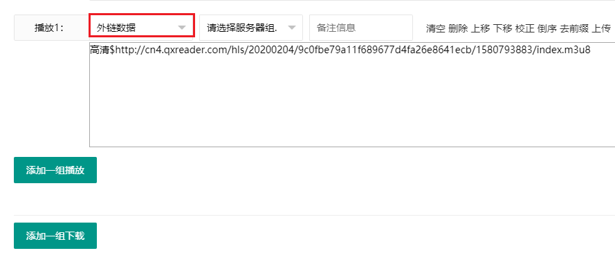 第二,添加外链视频数据比如腾讯 优酷 爱奇艺之类等等,添加方法和上面的步骤差不多 只是在选择播放器的时候选择外链数据即可。如下图