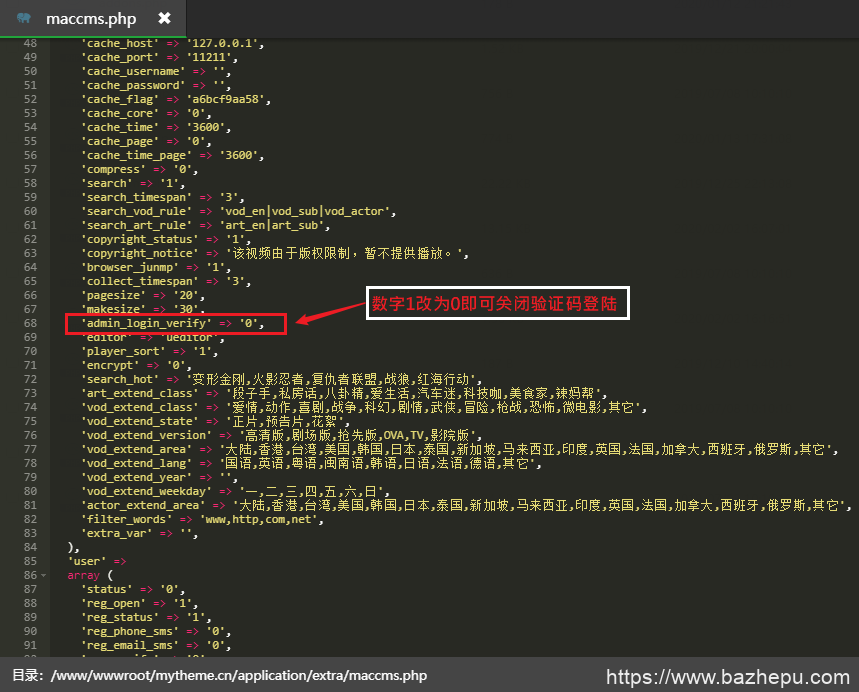 1,网站跟目录/application/extra/maccms.php第67或是68行把admin_login_verify的后面的1改为0即可关闭后台验证码
